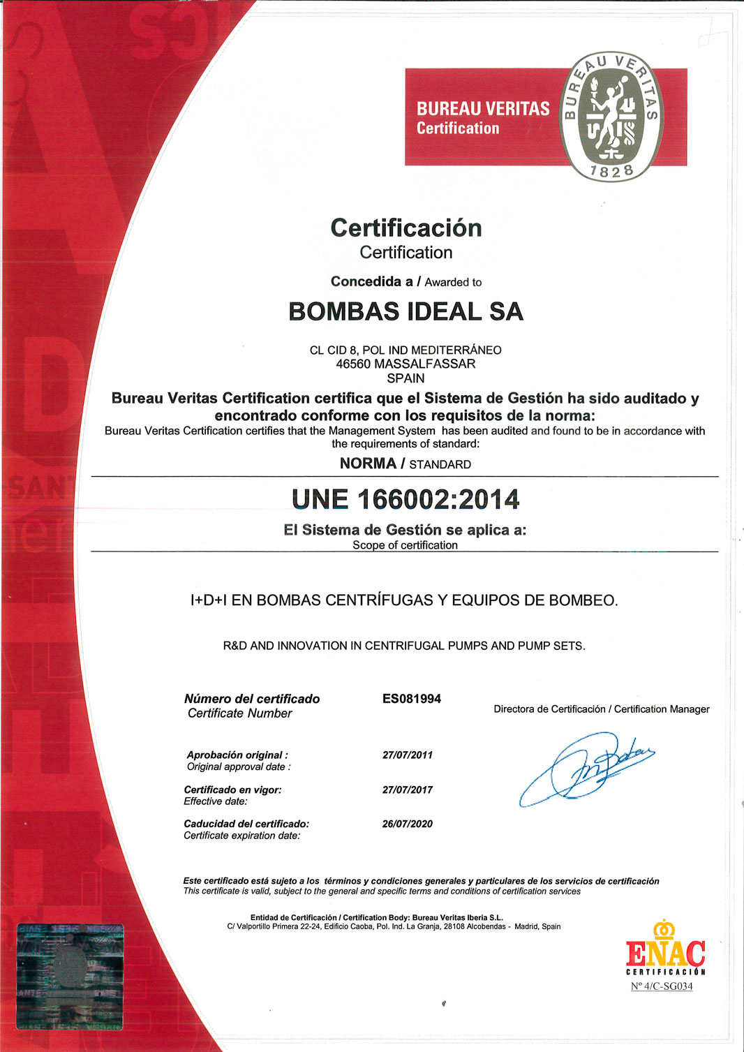 CHỨNG CHỈ UNE 166002:2014